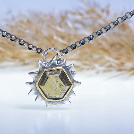 Náhrdelník Slunce se “zlatým kamenem” - pyritem v křemeni