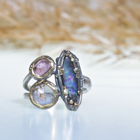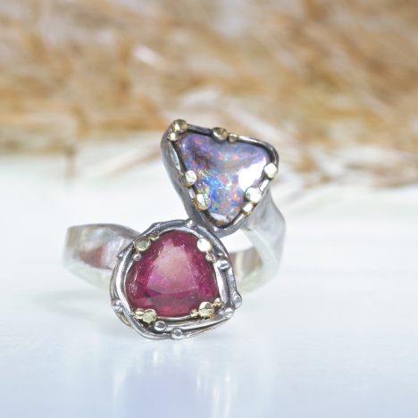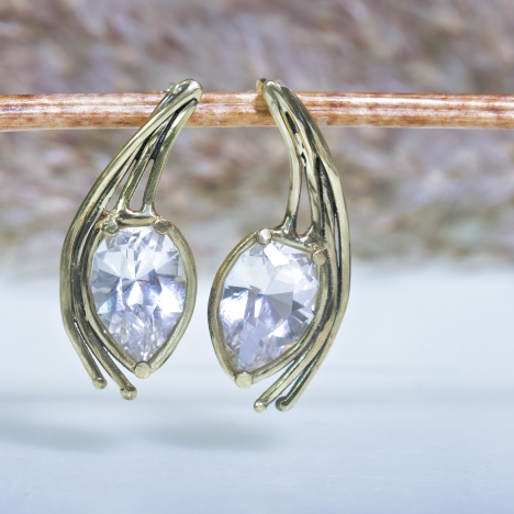 Otevřený zlatý prsten se dvěma českými křišťály/citríny