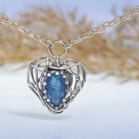 Zlatý náhrdelník srdce s modrým turmalínem - bílé zlato
