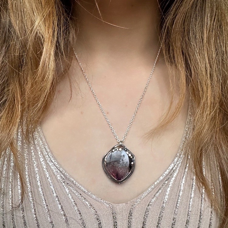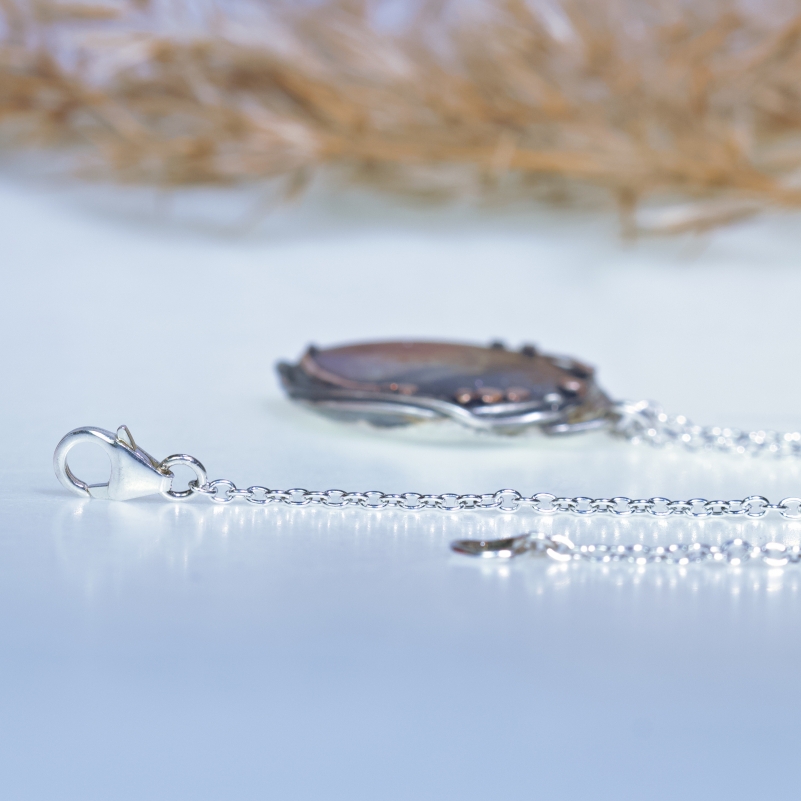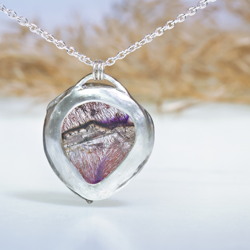 Náhrdelník s vzácným melody stone/ super 7 s krásnou kresbou. 14k zlaté detaily kolem kamene (růžové zlato). Přívěšek patinován, na přání lze napatinovat i řetízek.