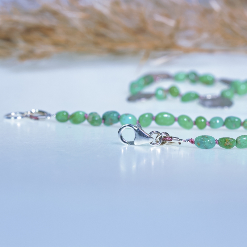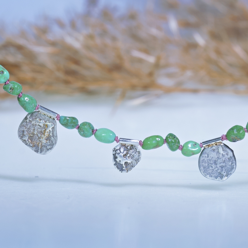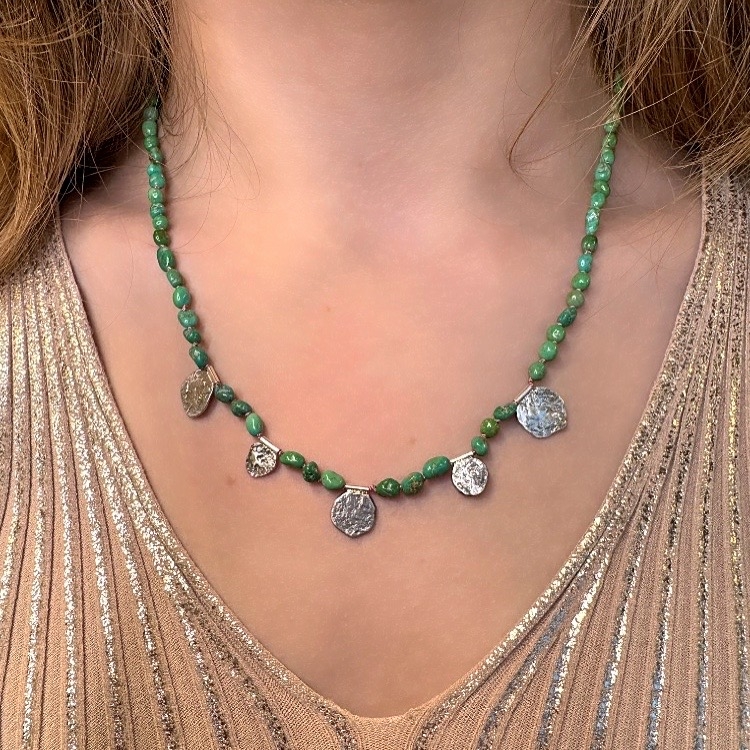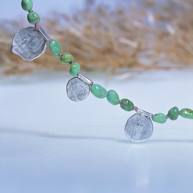 Náhrdelník Spirit se zelenými tyrkysy a stříbrnými plíšky