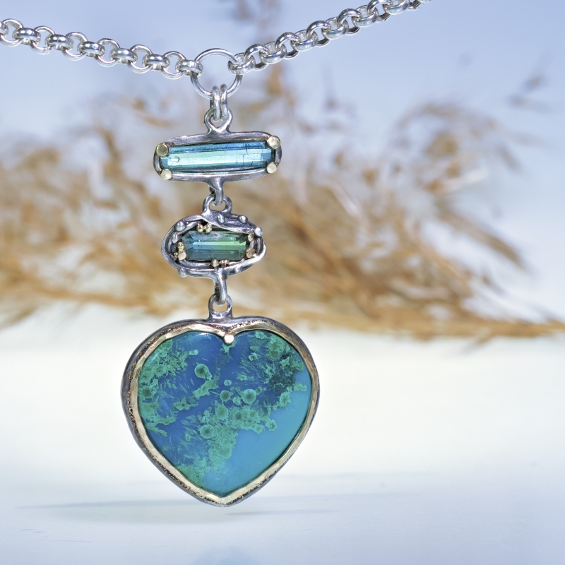 Náhrdelník Srdce s gem silikou - chrysokolou a turmalíny