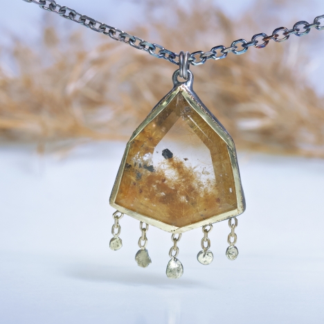 Dlouhý náhrdelník s obdélníkovým rutilovým křišťálem
