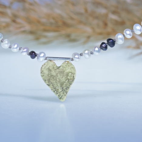 Černo-bílý perlový náhrdelník se zlatým srdcem