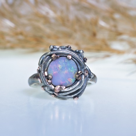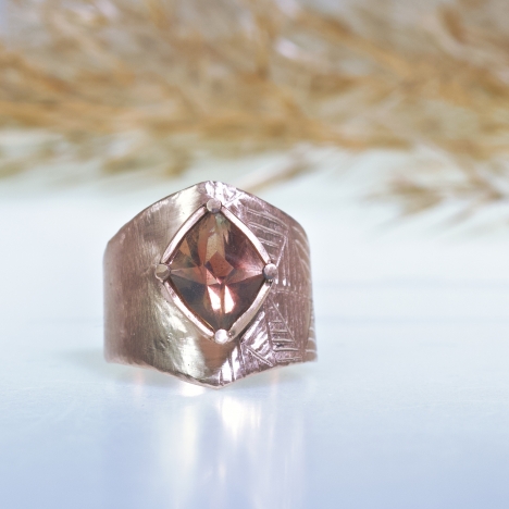 Prsten s rutilovým olivínem a stříbrným srdcem