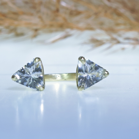 Otevřený zlatý prsten se dvěma českými křišťály/citríny