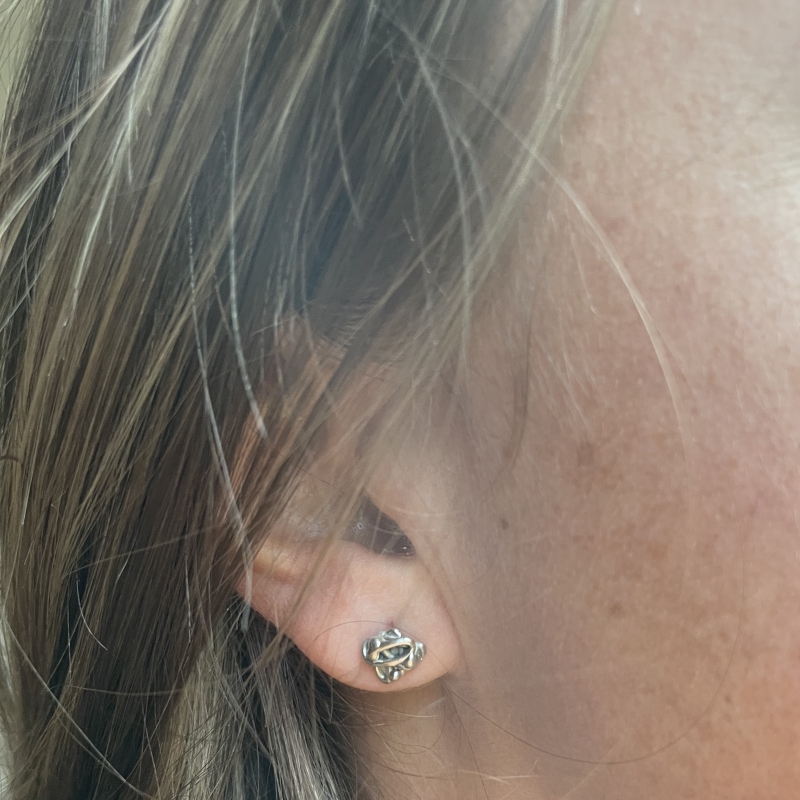 Drobné stříbrné náušnice na puzetu ve stylu kolekce galaxy. Jemná patina.