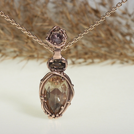 Zlaté náušnice s oregonskými slunečními kameny - champagne