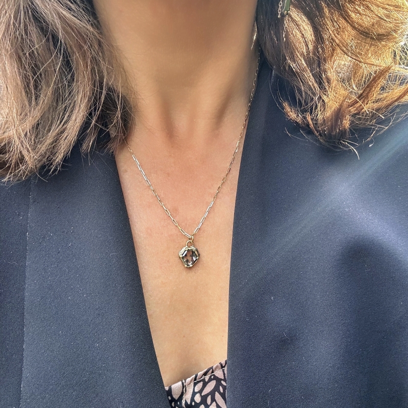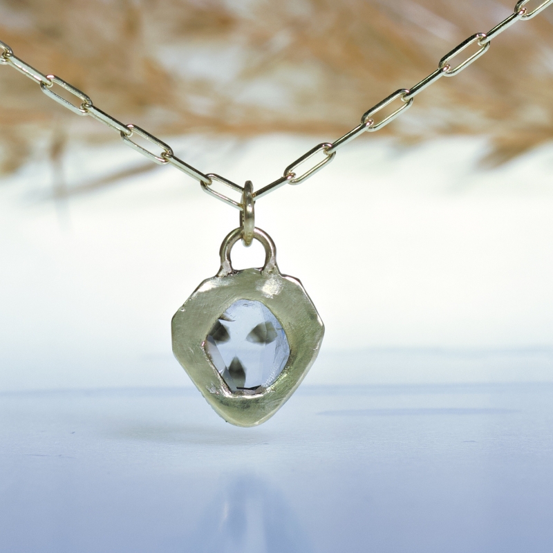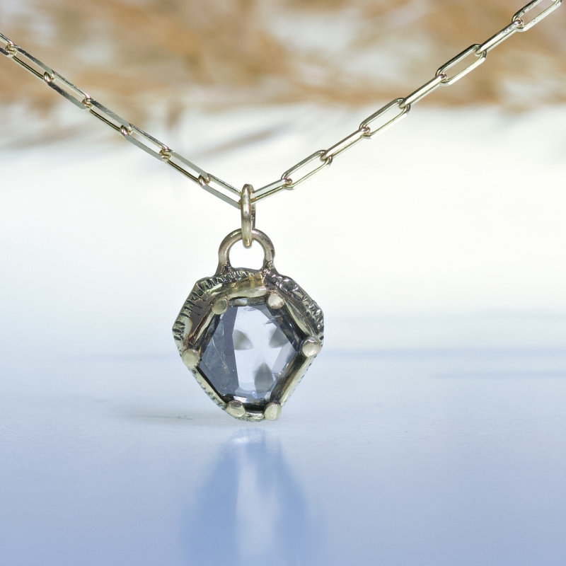 Náhrdelník z 14k zlata s trapiche/ssteriated přírodním diamantem. Diamant má prírodní tvar a pravidelné inkluze, jen je vyleštěný.