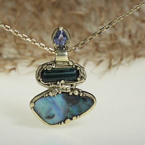 Zlatý prsten Galaxy s tmavě modrým opálem
