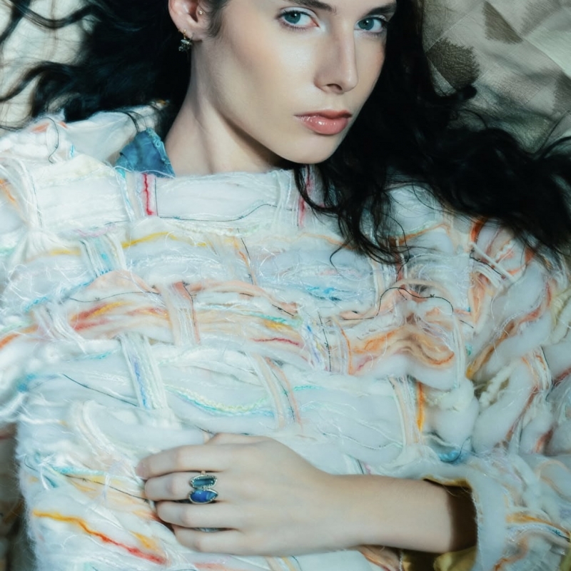 Prsten z bílého zlata s australským boulder opálem v modrých tónech a broušeným turmalínem v zelenomodrém odstínu. Pouze tento jeden ve v. 58-59.