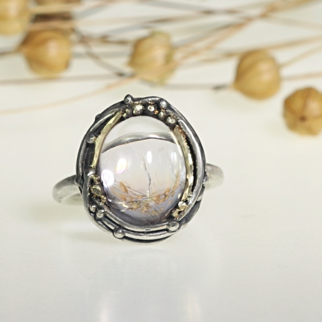 Zlatý prsten s křišťálem s oxidy železa a žlutými safíry