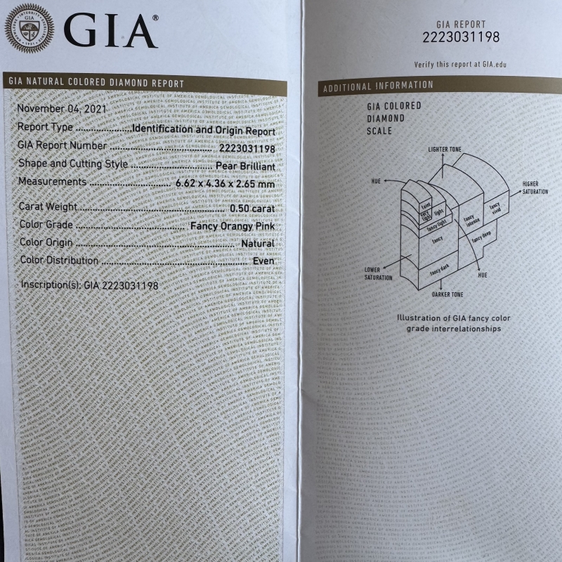 Originální zlatý prsten otevřeného typu s vzácnými růžovým diamantem. Organická obroučka. Diamant má jednu viditelnou inkluzy a certifikát GIA.