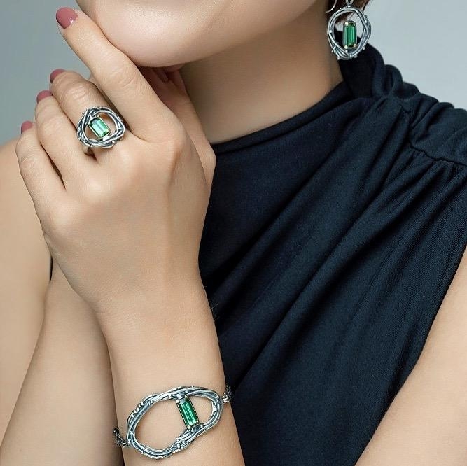 One of a kind bracelet with precision cut green tourmaline. This one has sold out, similar can be made upon your request, size of the stone vary. Oxidized.