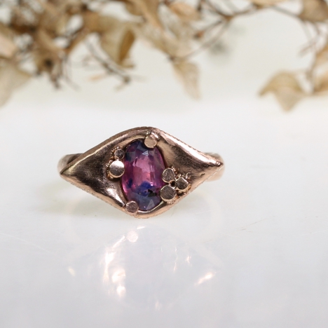 One of a kind lace flower hanging earrings with pink rose cut sapphire/ruby. 14k gold line around the stones. Simple hook or claps fastening upon your request.