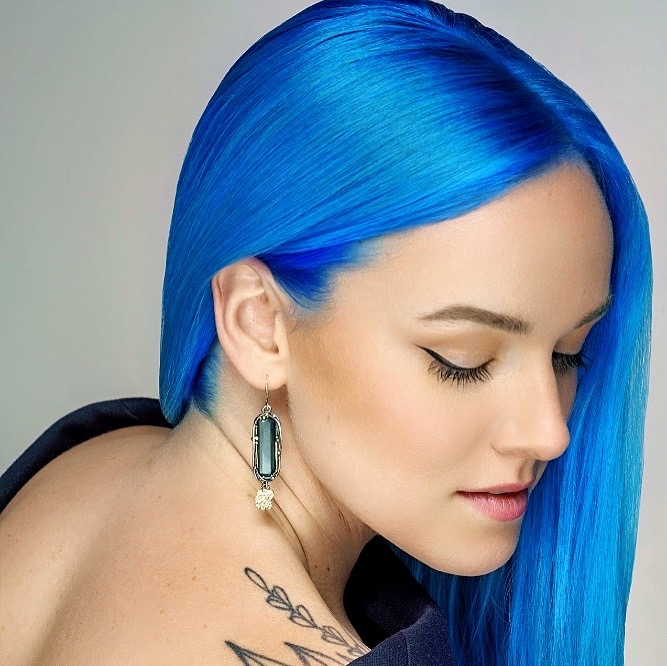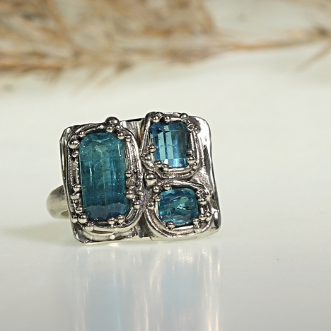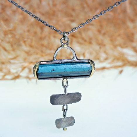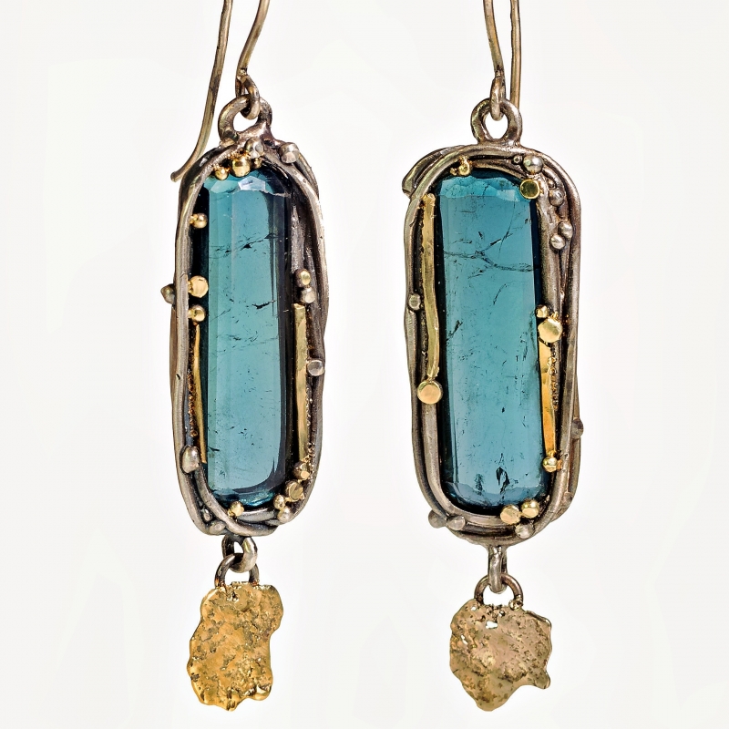 Earrings with long blue tourmaline