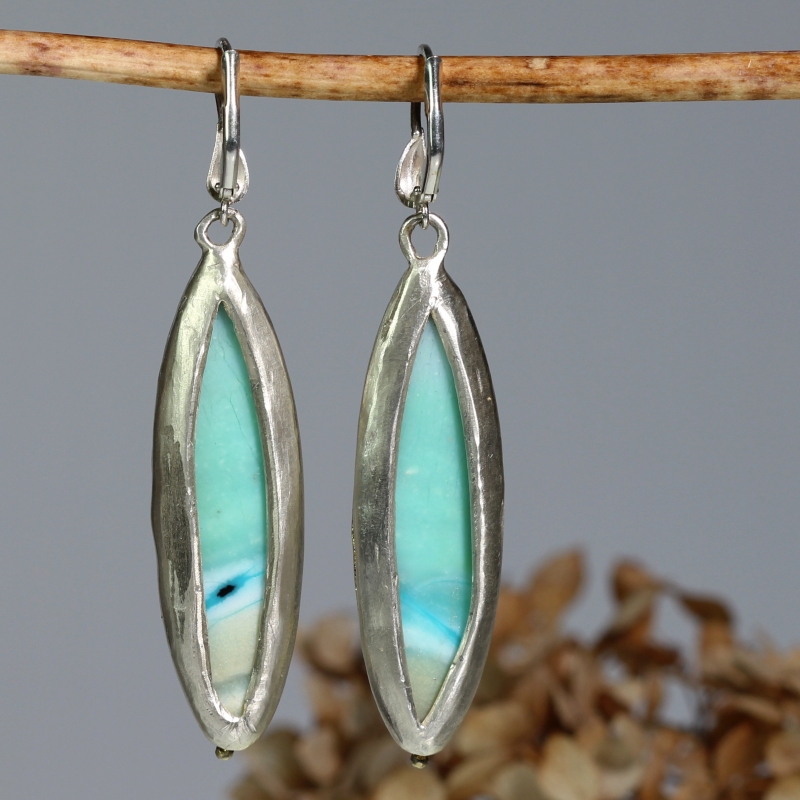 Earrings with long indonesian opalized wood