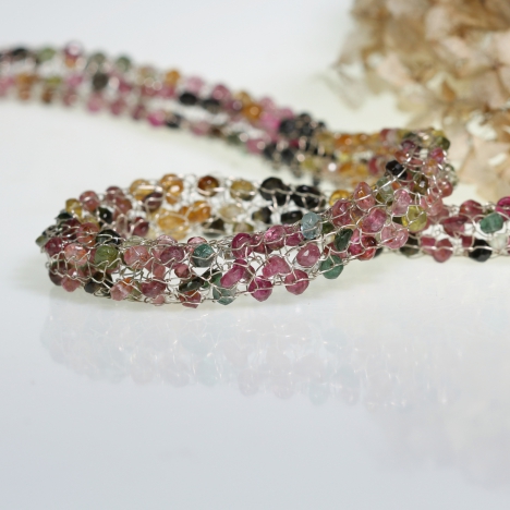Sterling silver necklace made from silver wire waved by hand with faceted labradorites rondelles. Fastening by hook. Unique fine necklace.