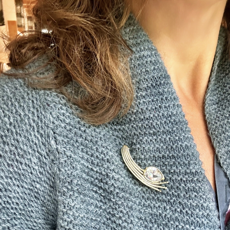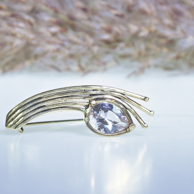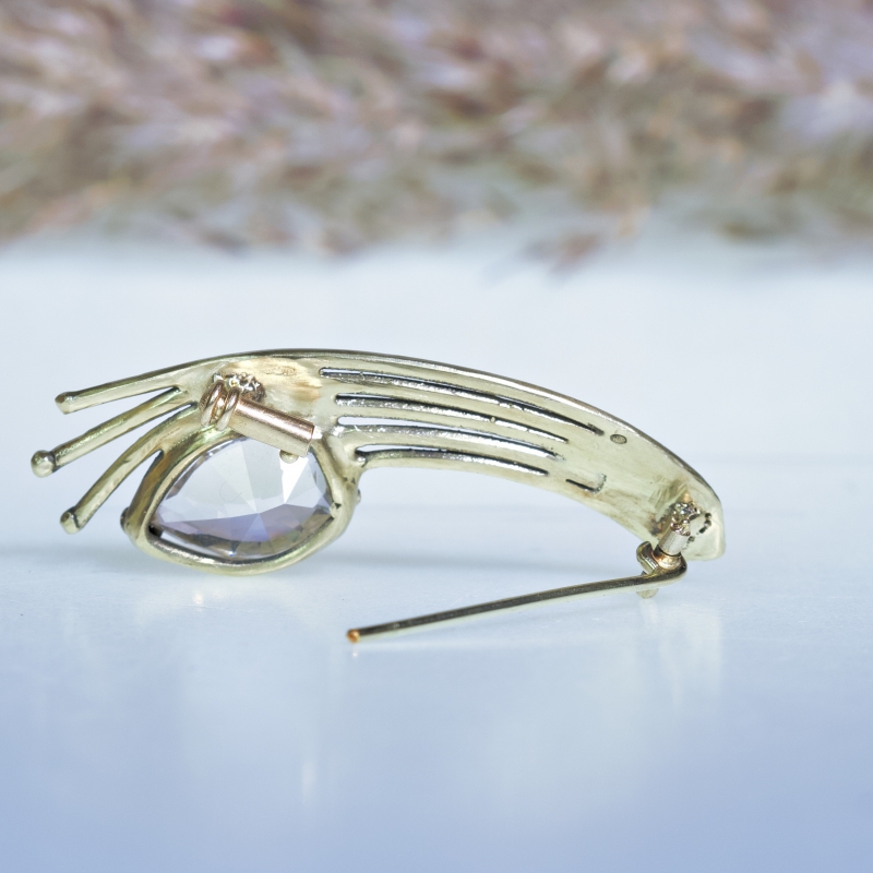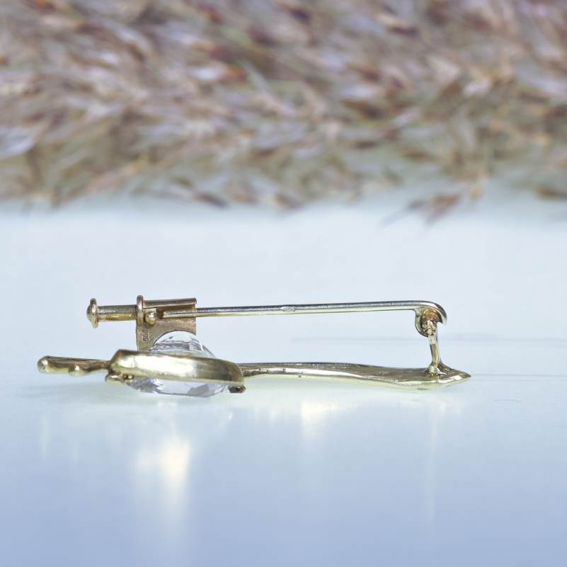 Brooch with amazing presicion cut danburite. 14k yellow gold.