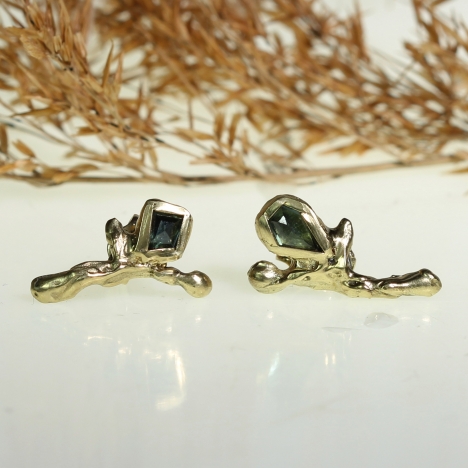 One of a kind 14k yellow gold earrings with faceted green sapphires. Fine, lightweigth and original earrings.