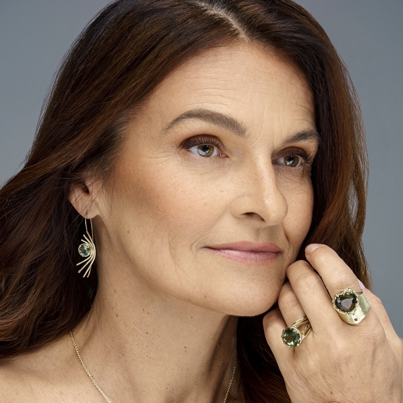 Gold earrings with moldavite