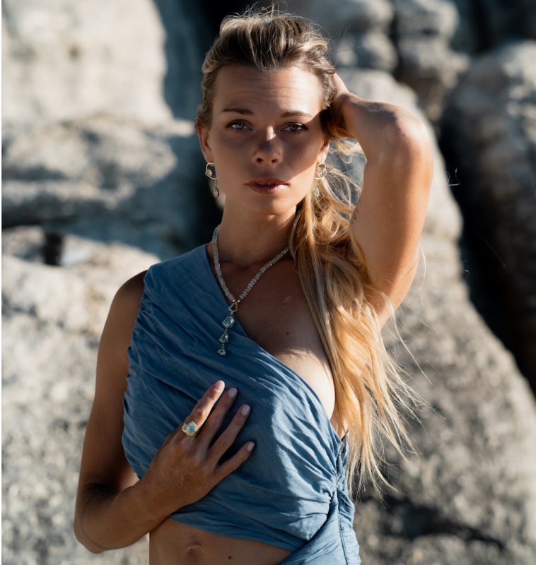 One of a kind necklace with three geometric cut aquamarines and aquamarine beads. 6cm is the lenght of aqamarine pendant. Beaded necklace can be worn separately and pendant can be also worn on a simple gold chain. Different length of beaded necklace can be made upon your request.