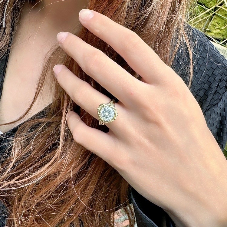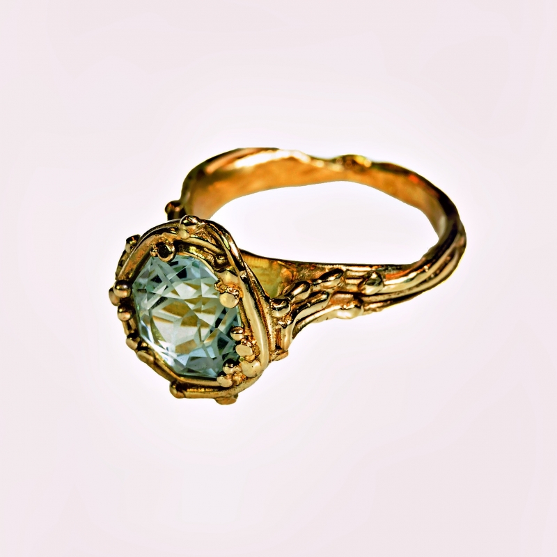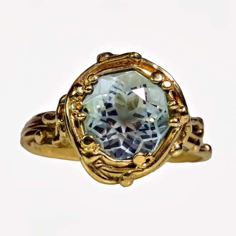 Gold ring with aquamarine in mandala cut