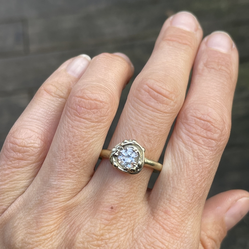 Gold ring with small round danburite