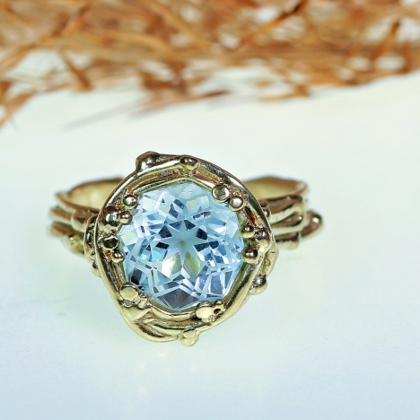One of a kind 14k yellow gold ring with wide band and precision cut yellow beryl. Heart on the back side of the band.