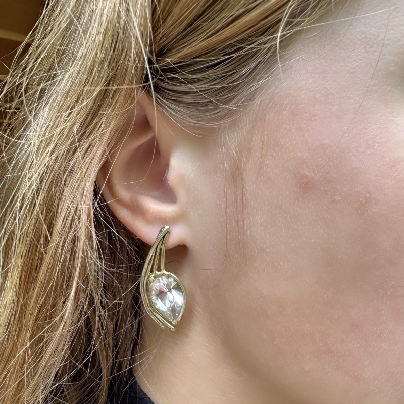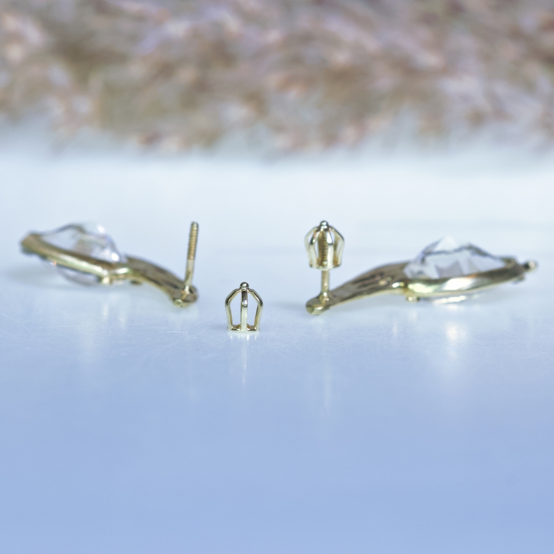 One of a kind 14k yellow gold earrings with amazing precision cut danburite. Screw stud fastening (may be modify to hanging earrings upon your request).