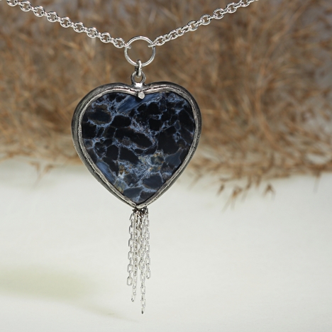 One of a kind necklace with heart shape rhodochroisite. 14k gold line around the stone.