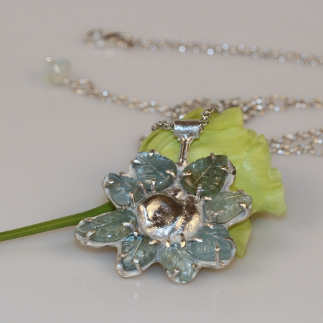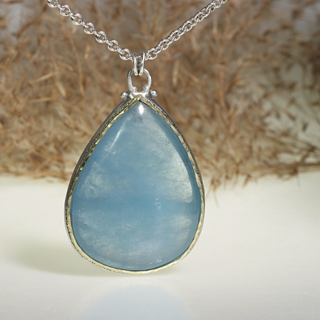 Necklace with big aquamarine and structure