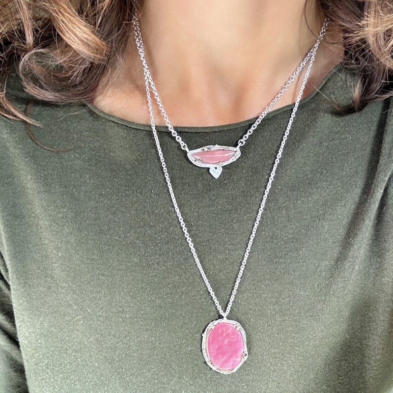 One of a kind necklace with pale pink Guava quartz and sterling silver heart. 14k gold details around the stone. May be oxidized upon your request.