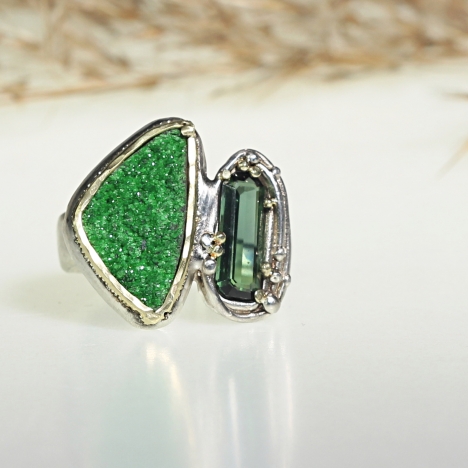 - size of stones sapphire 0,75ct app. 0,6, Madagaskar and Uvarovite 21,75ct, 2cm, Russia