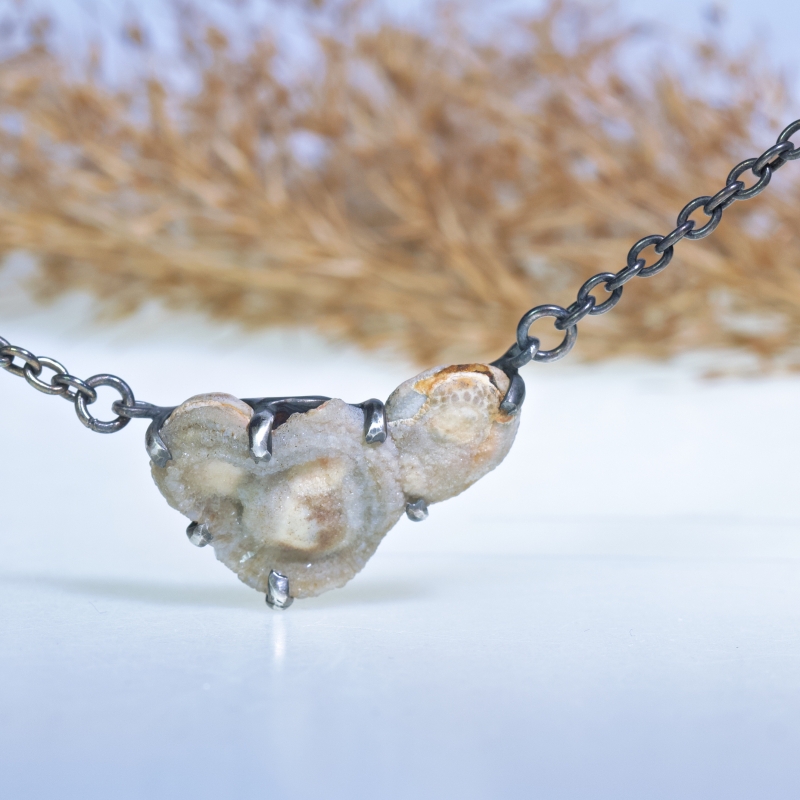 Necklace with small chalcedony rose
