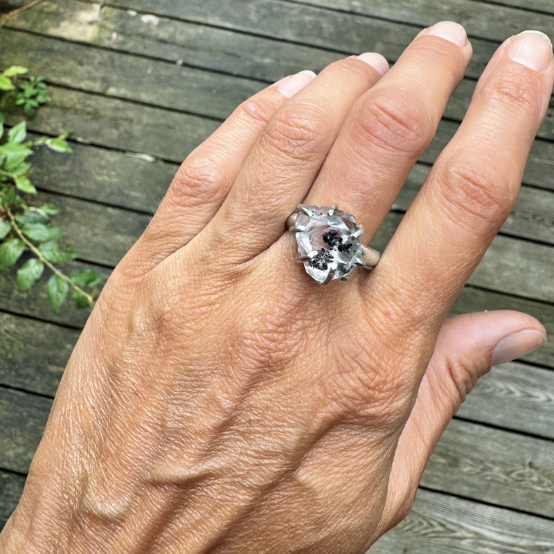 Ring with big Herkimer quartz