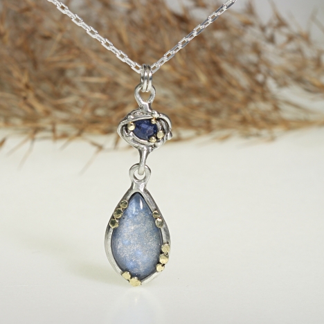One of a kind ring with top quality dumortierite with inner crystal. 14k gold line around the stone. Organic band, only this one.