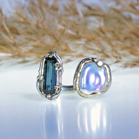Wide Galaxy ring with petroleum quartz
