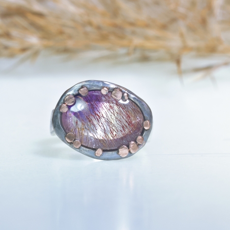 Ring with oval rutile amethyst