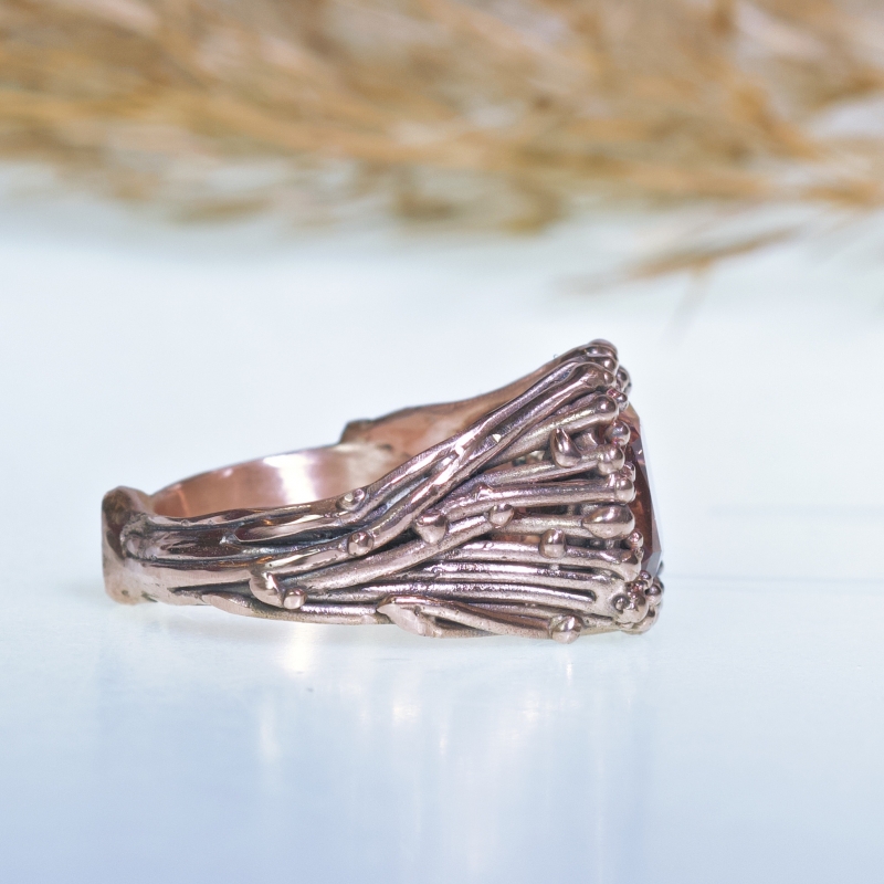 One of a kind 14k rose gold Galaxy ring with amazing bright pink-orange tourmaline.